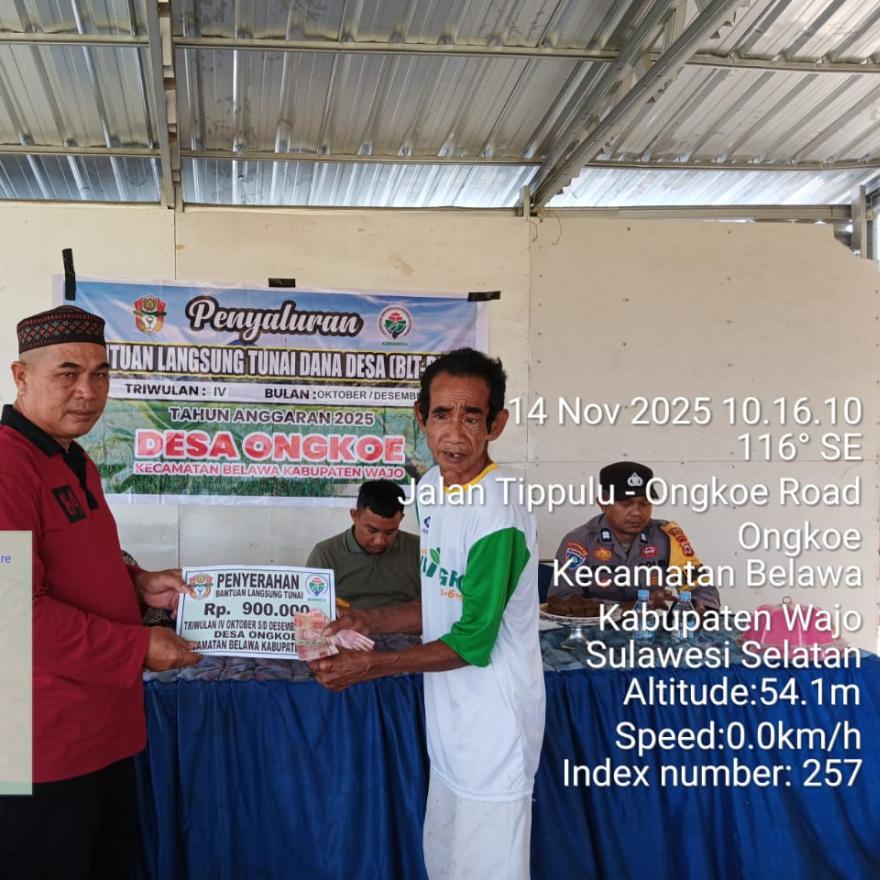Penyaluran BLT kali ini dihadiri oleh Ketua BPD Desa Ongkoe, Kasi PMD Kecamatan Belawa, Kepala Desa Ongkoe, serta Bhabinkamtibmas Desa Ongkoe. Kehadiran unsur pemerintahan dan kepolisian tersebut memastikan proses penyaluran berjalan sesuai ketentuan dan transparan.